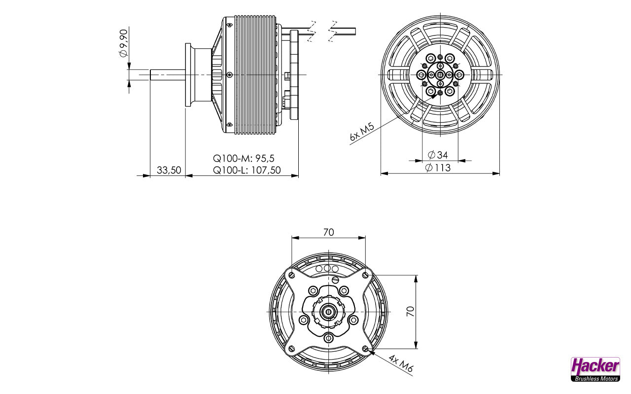 With the Q100-M, we are now bringing a motor from our industrial sector to the modelling sector, with its innovative design and efficient motor geometry guaranteeing enormous power and outstanding performance. This high-end motor is completely hand-built and constantly undergoes the most precise quality controls. "Made in Germany" and industrial quality stand for the highest standards and quality. The new prop driver with 34mm bolt circle and 6 x M5 screws transfers the high torque of the Q100 perfectly to the prop.